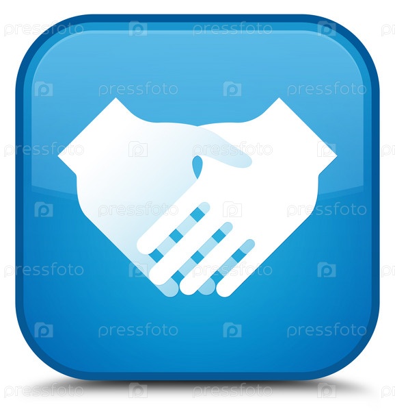 Икона рукопожатия специальный синий цвет синего квадратного кнопки