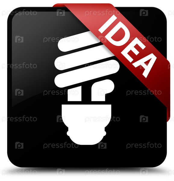 Идея (икона лампочки) черная квадратная кнопка красная лента в углу