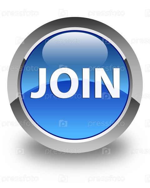 Присоединитесь к глянцевой голубой круглой кнопке