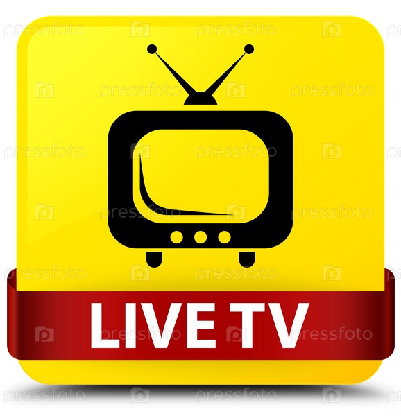 Живое телевидение желтый квадратный кнопка красная лента посередине