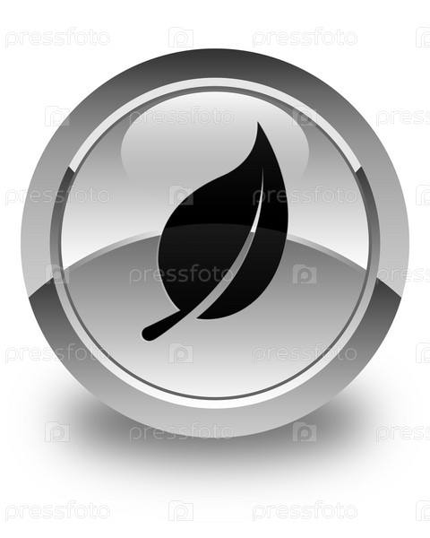 Икона листьев блестящая белая круглая кнопка