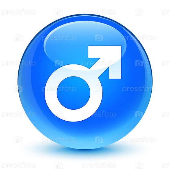 Мужской знак икона стеклянный синий голубой круглый кнопка