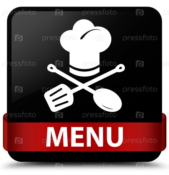 Меню (икона ресторана) черная квадратная кнопка красная лента посередине
