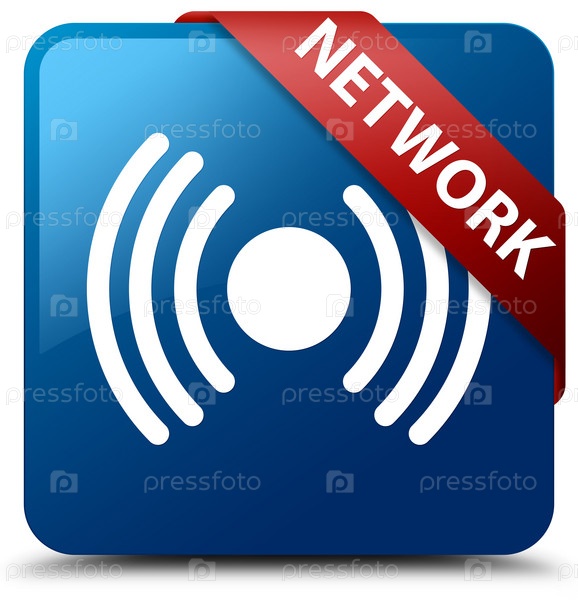 Сеть (икона сигнала) голубая квадратная кнопка красная лента в углу
