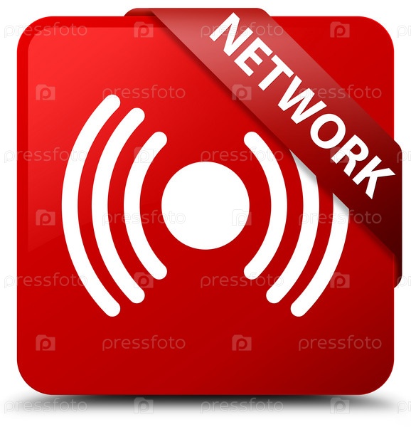 Сеть (икона сигнала) красная квадратная кнопка Красная лента в углу