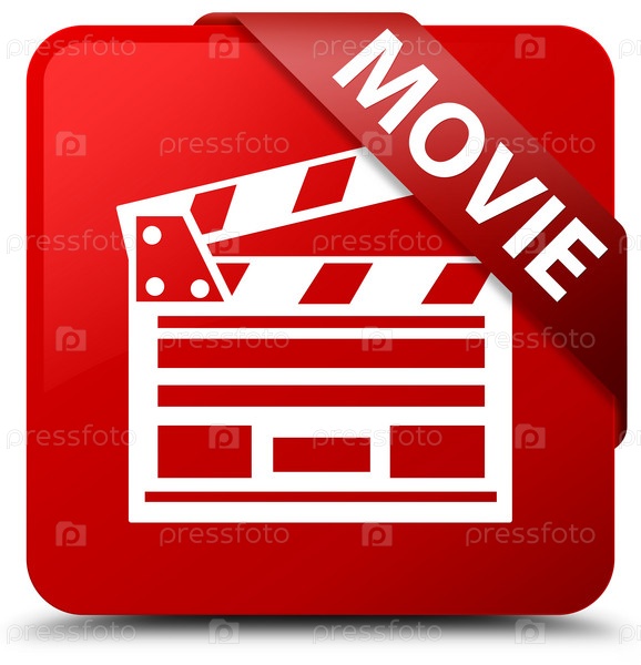 Movie (cinema clip icon) красная квадратная кнопка Красная лента в углу