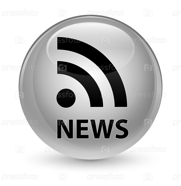 Новости (икона RSS) стеклянная белая круглая кнопка