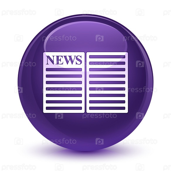Икона газеты стеклянная фиолетовая круглая кнопка