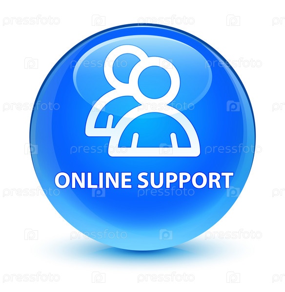 Онлайн-поддержка (икона группы) стеклянная синяя синевая круглая кнопка
