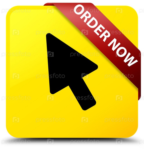 Заказать сейчас (икона курсора) жёлтая квадратная кнопка красная лента в углу