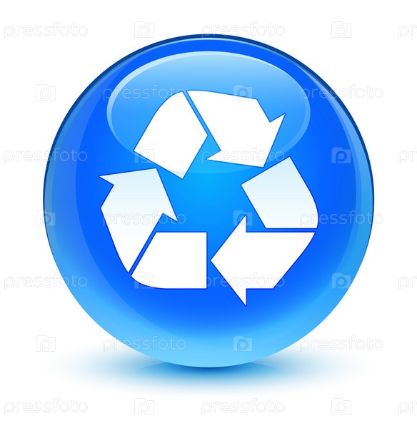 Икона переработки стеклянный синий голубой круглый кнопка