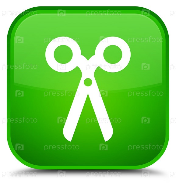 Икона ножницы специальная зеленая квадратная кнопка