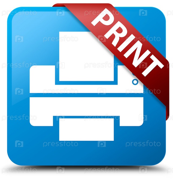 Напечатать (икона принтера) синий синий квадратный кнопка красная лента в углу
