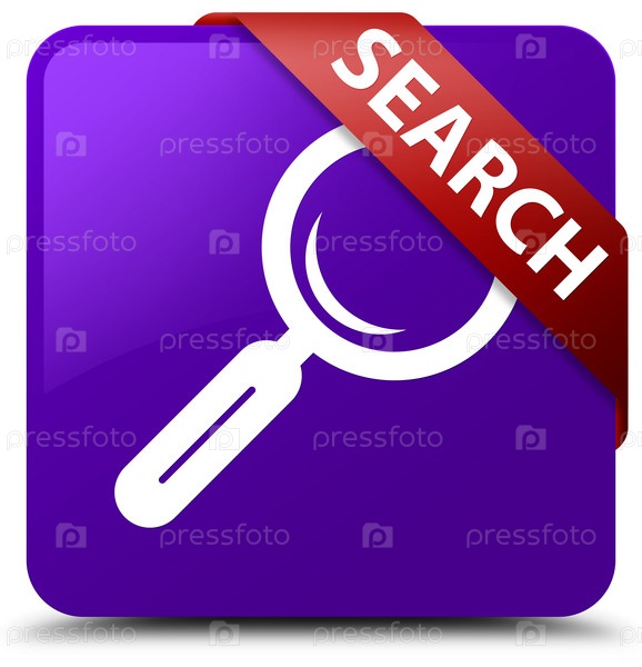 Поиск фиолетовый квадратный кнопка красная лента в углу