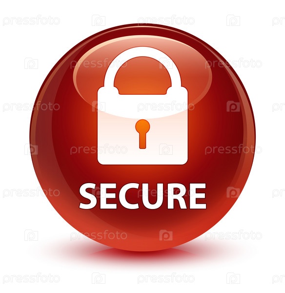 Безопасно (икона замка) стеклянная коричневая круглая кнопка