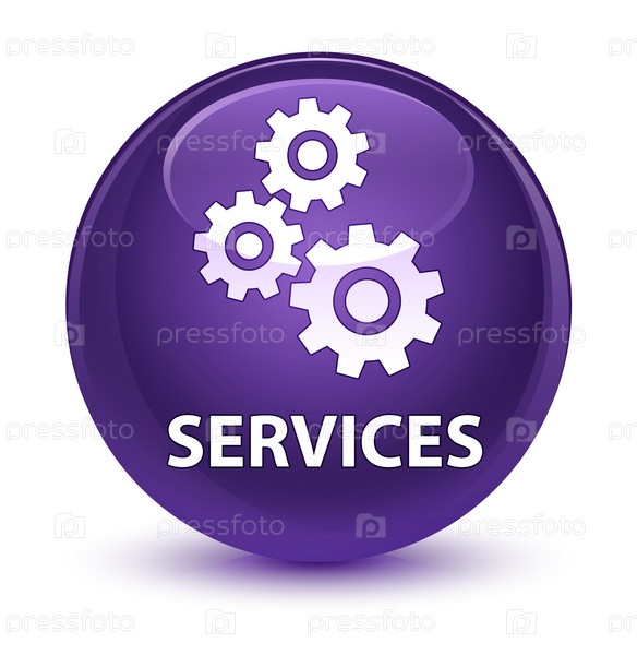 Услуги (икона передач) стеклянная фиолетовая круглая кнопка