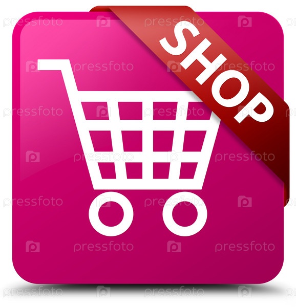 Магазин розовая квадратная кнопка красная лента в углу