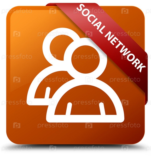 Социальная сеть (икона группы) коричневая квадратная кнопка красная лента в углу
