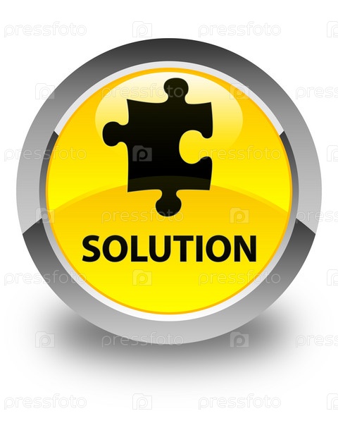 Решение (икона головоломки) глянцевая желтая круглая кнопка