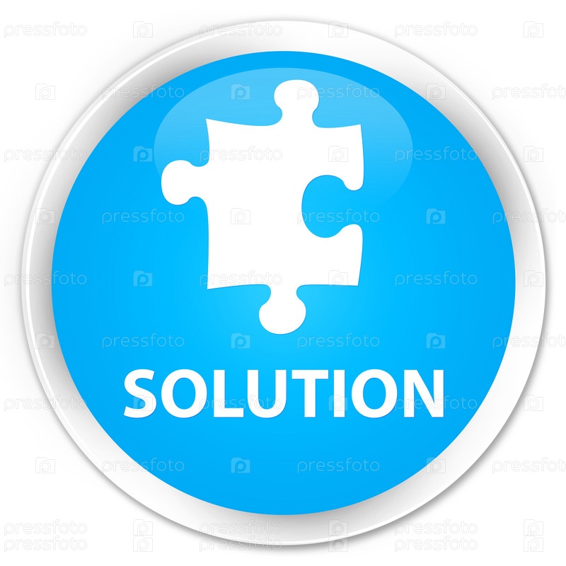 Решение (икона головоломки) премиум-циановый синий круглый кнопка