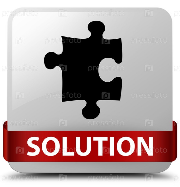 Решение (икона головоломки) белая квадратная кнопка красная лента посередине