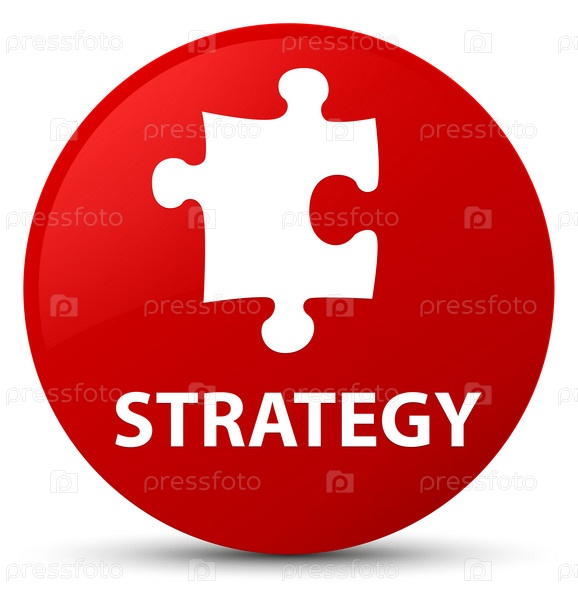 Стратегия (икона головоломки) красная круглая кнопка