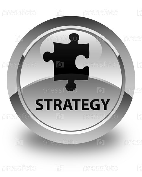 Стратегия (икона головоломки) блестящая белая круглая кнопка