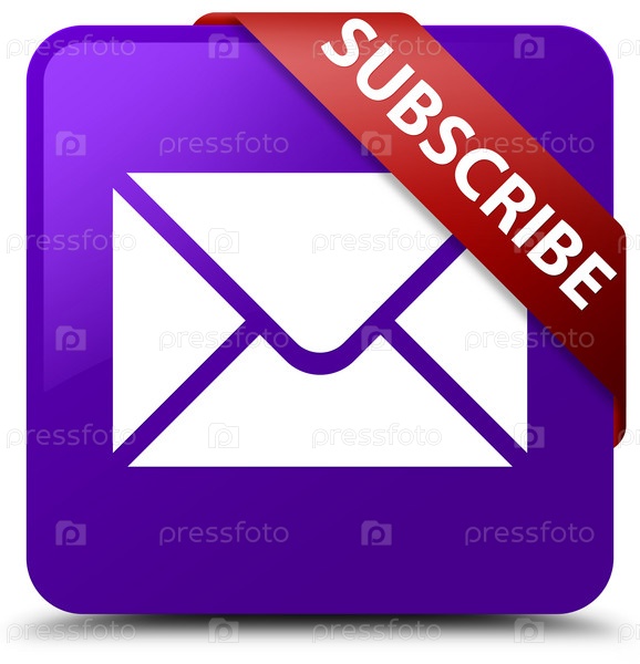 Подпишитесь (икона электронной почты) фиолетовая квадратная кнопка красная лента в углу