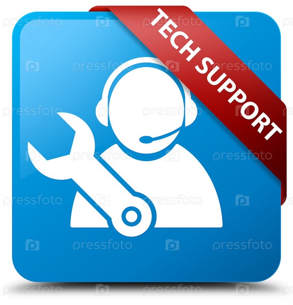 Техническая поддержка циан синий квадратный кнопка красная лента в углу