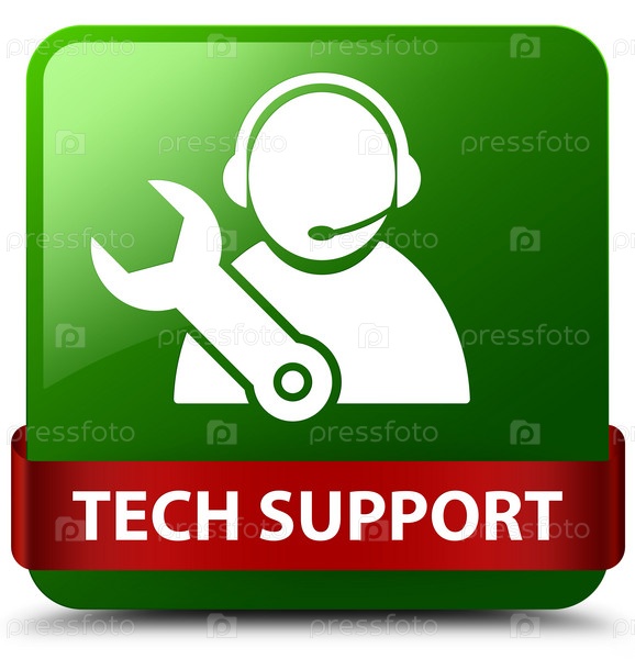 Техническая поддержка зеленая квадратная кнопка красная лента посередине