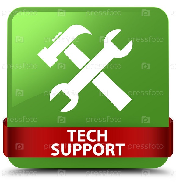 Техническая поддержка (икона инструментов) мягкий зеленый квадратный кнопка красная лента посередине
