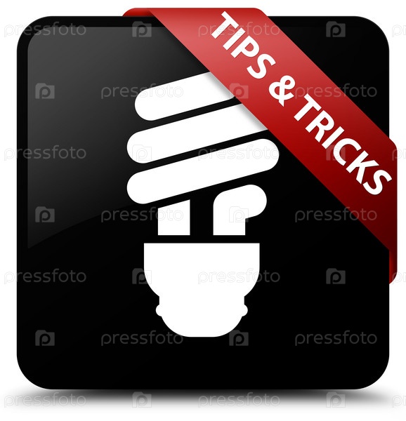Советы и приемы (икона лампочки) черная квадратная кнопка красная лента в углу