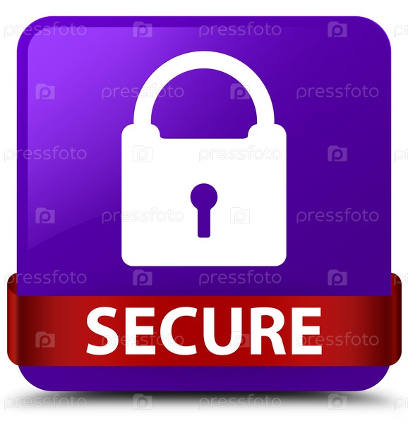 Безопасно (икона замка) фиолетовая квадратная кнопка красная лента посередине
