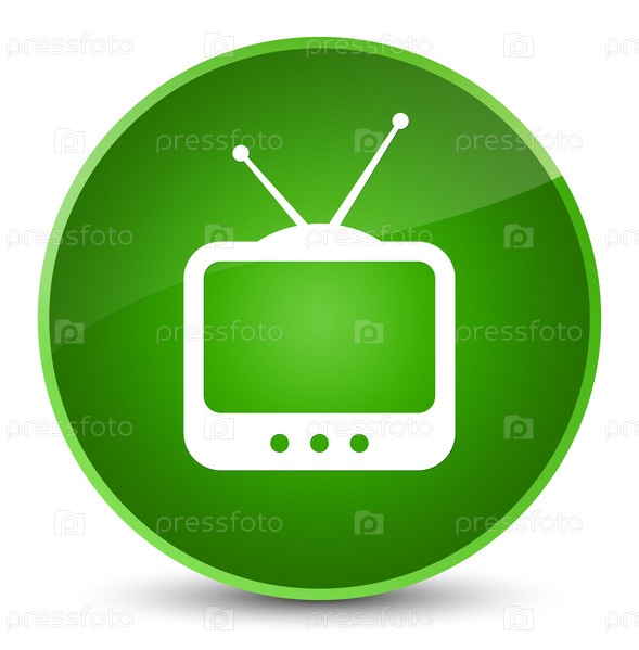Икона телевизора с элегантной зеленой круглой кнопкой