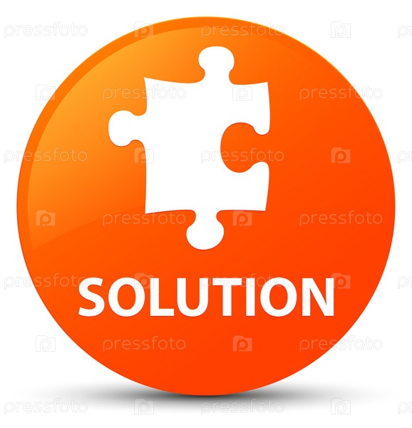 Решение (икона головоломки) оранжевая круглая кнопка