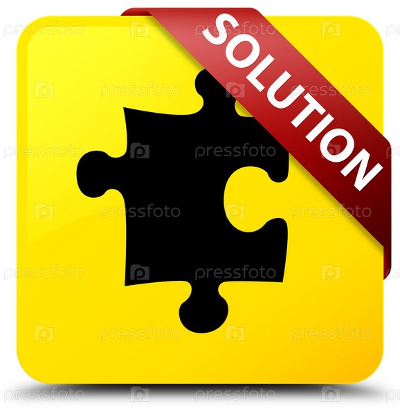 Решение (икона головоломки) жёлтая квадратная кнопка красная лента в углу