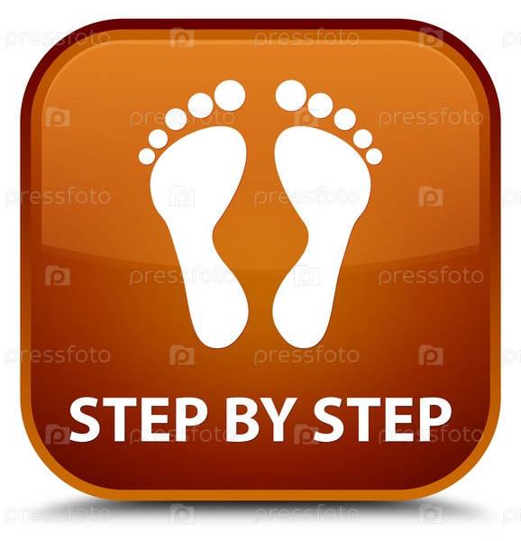 Шаг за шагом (икона отпечатков) специальная коричневая квадратная кнопка