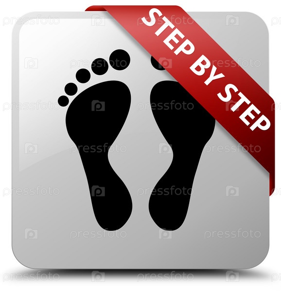 Шаг за шагом (икона отпечатков) белая квадратная кнопка красная лента в углу
