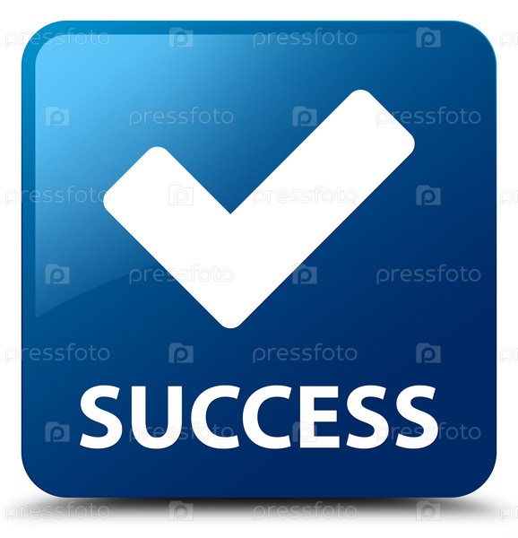 Успех (икона проверки) синяя квадратная кнопка