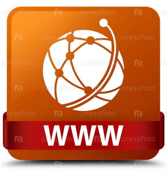 WWW (икона глобальной сети) коричневая квадратная кнопка красная лента посередине