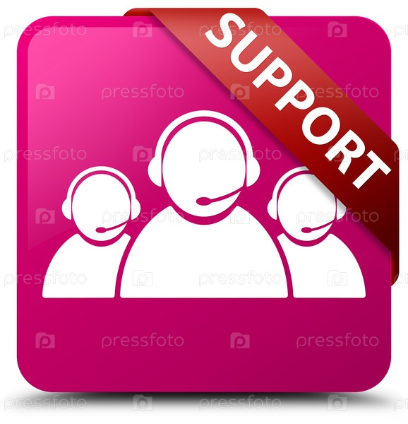Поддержка (икона команды по обслуживанию клиентов) розовая квадратная кнопка красная лента в углу