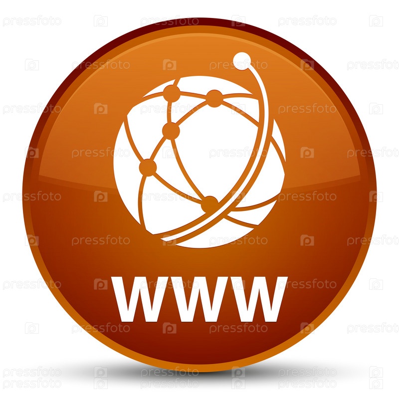 WWW (икона глобальной сети) специальная коричневая круглая кнопка