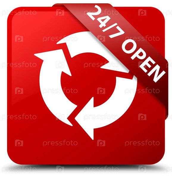 24/7 открытый красный квадратный кнопка красная лента в углу