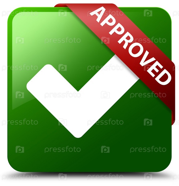 Approved (validate icon) зеленая квадратная кнопка красная лента в углу