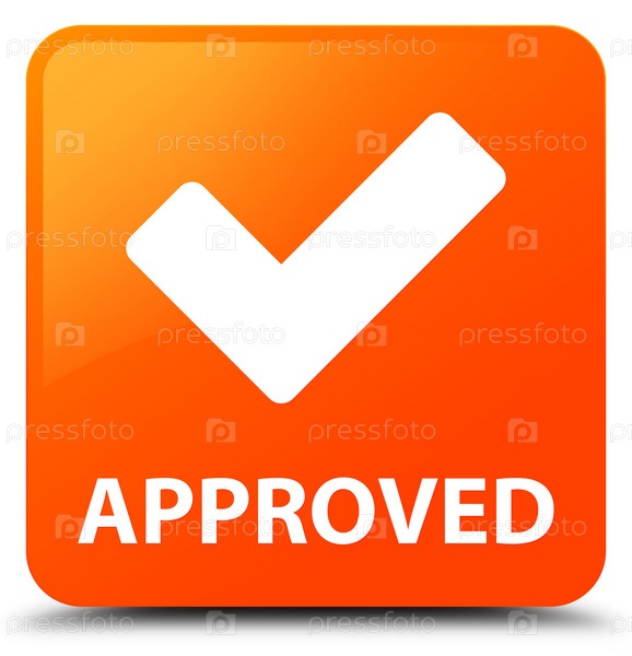 Approved (validate icon) оранжевая квадратная кнопка