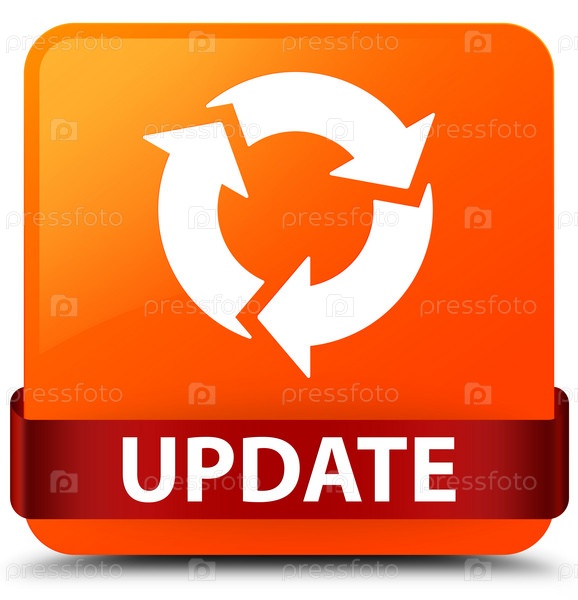 Обновление (икона обновления) оранжевая квадратная кнопка красная лента в середине