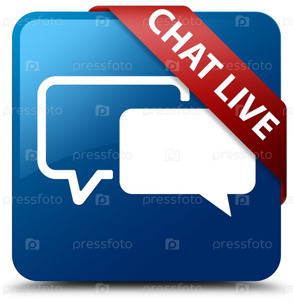 Чат в прямом эфире синяя квадратная кнопка красная лента в углу