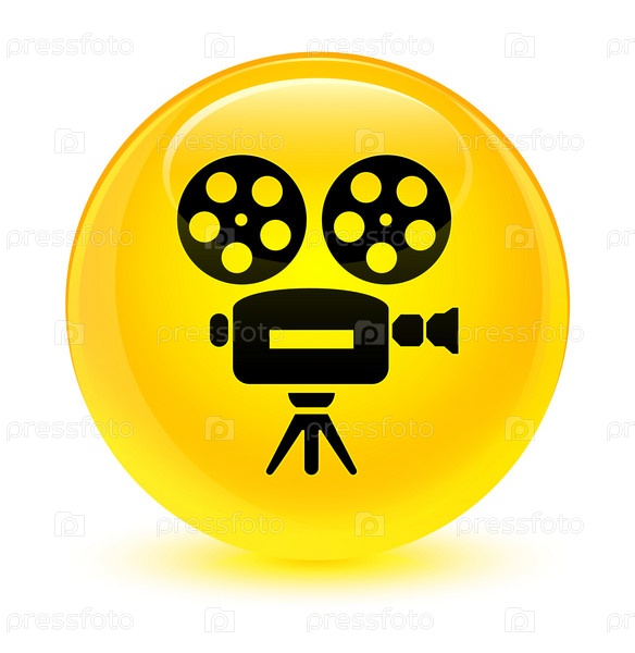 Икона видеокамеры стеклянная желтая круглая кнопка