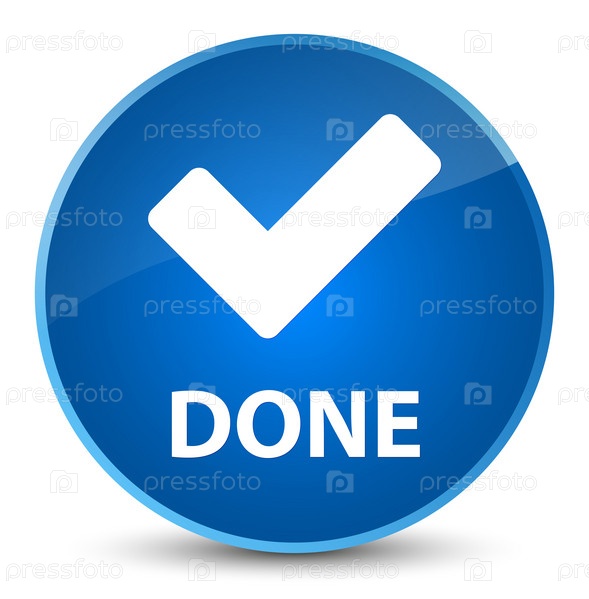 Сделано (икона проверки) элегантная голубая круглая кнопка