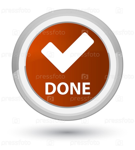 Сделано (икона проверки) первичная коричневая круглая кнопка